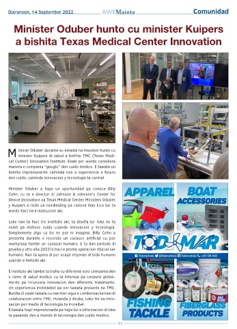 Device Innovation na Texas Medical Center. Ministers Oduber