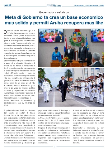 durante 2020, ta den pleno ehecu- recientemente cu Hulanda.” finanza publico. No por keda sin señala
