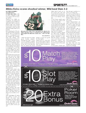 Koivu, playing his 15th sea- Minnesota Wild's Mikko Koivu hugs goalie Alex Stalock after ing. And I hit it square." been out since Nov. 16 as