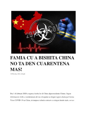 Dia 1 di februari 2020 a regresa Aruba for di China algun residente Chines. Segun