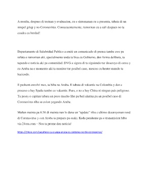 simpel griep y no Coronavirus. Consecuentemente, rumornan cu a sali despues no ta
