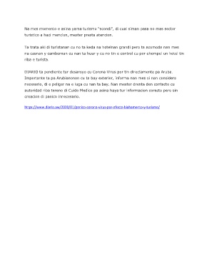 DIARIO ta pendiente tur desaroyo cu Corona Virus por tin directamente pa Aruba.