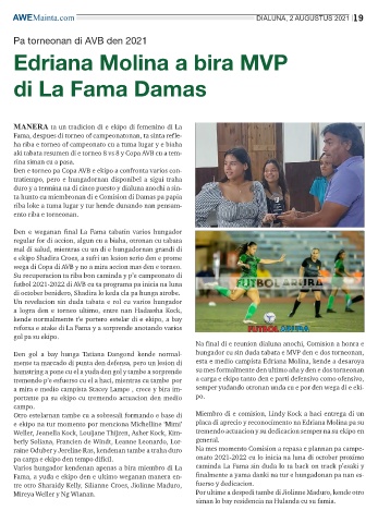 Den gol a bay hunga Tatiana Dangond kende normal- hungador cu sin duda tabata e MVP den e dos torneonan,
