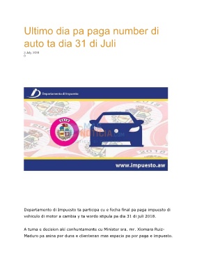 vehiculo di motor a cambia y ta wordo stipula pa dia 31 di juli 2018.