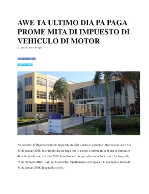 31 di januari 2018, ta e ultimo dia pa paga por lo menos e prome mita di aña di impuesto