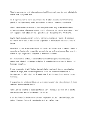 E caso en cuestion di actividadnan bancario ilicito a sali na cla den un investigacion
