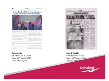Awemainta Solo di Pueblo PR Value: Afl. 2.188,00 PR Value: Afl. 835,00 th th Date: 14 March,2020 Date: 14 March,2020 Size: 175 Cm/Col Size: 55 Cm/Col