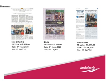 Newspaper: Solo di Pueblo Diario Awe Mainta PR Value: Afl. 675,00 PR Value: Afl. 675,00 PR Value: Afl. 895,00 nd Date: 2 June,2020 Date: 2 June ,2020 Date: 2 June,2020 nd nd Size: 65 Cm/Col Size: 65 Cm/Col Size: 85 Cm/Col