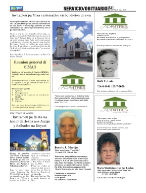 Reunion General cu ta tuma lugar dialuna 10 Ruth C. Lake