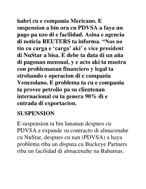 di NuStar a bisa. E debe ta data di un aña
