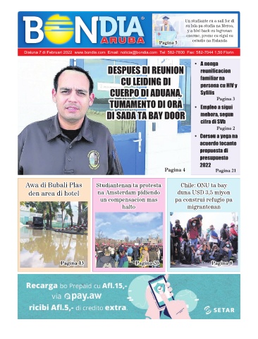 Dialuna 7 di Februari 2022 www.bondia.com Email: noticia@bondia.com Tel: 582-7800 Fax: 582-7044 1,50 Florin