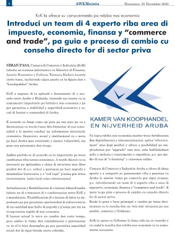 posibel dor di e.o. reduci e gastonan pa haci negoshi y Camara di Comercio y Industria Aruba a ofrece di duna