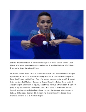 Dialuna awor Federacion di tennis di mesa ya lo cuminsa cu nan torneo Copa