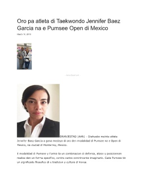 Jennifer Baez Garcia a gana medaya di oro den modalidad di Pumsee na e Open di