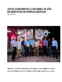 ATCO CONCRETE A CELEBRA 75 AÑA DI SERVICIO DI EMPLEADONAN 3 May, 2018, 7:29 pm 76 Empleadonan di ATCO Concrete Products a bini hunto pa celebra e añanan di servicio di empleadonan Hector Capellan, Luis Machado y Robby Fingal. E empleadonan a celebra