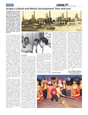 a cultural ambience, with 1950s, with the introduction cultural traditions in Aruba The 21st century Arubiano: E Bida Cultural by