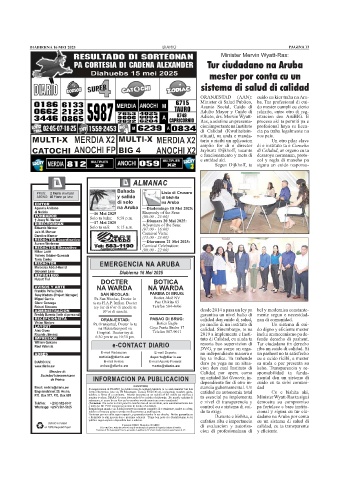on 100% Recycled Paper COPYRIGHT: Nada den DIARIO mag di worde copia sin permiso di Agencia Arubano di Noticia. di evaluacion y autorisa- calidad, cu ta transparente