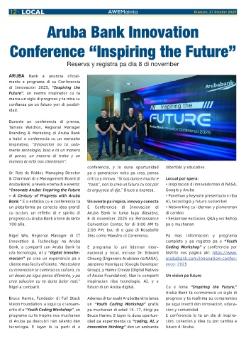 macion” pa crea un experiencia pa e Cheung (Ingeniero Arubiano na NASA), arubabank.com/innovation-confer-