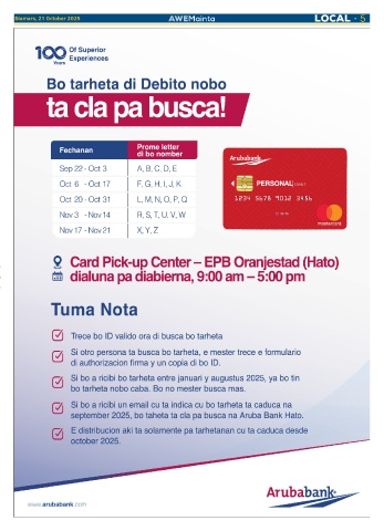 AB_NP_CARDS_papiamento COLOR_AF©.pdf 1 23/09/25 2:50 p.m. Diamars, 21 October 2025 AWEMainta LOCAL 5 C M Y CM MY CY CMY K