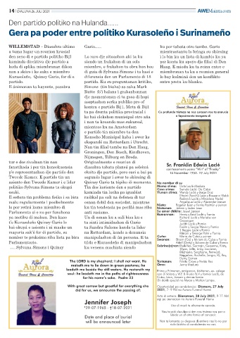 will be announced later Nos ta lamenta cu despues di entiero nos lo no por
