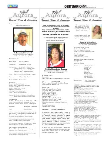 Acto di entiero: Diaranson, 28 July 2021, 9-11 AM Un agredecimento special pa Sra. Xenia Calvo