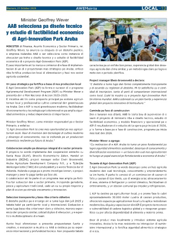 E Agri-Innovation Park (AIP) ta forma e curason di e programa y di acuerdo cu reglanan di destaho. Mi ta satisfecho cu e cant-