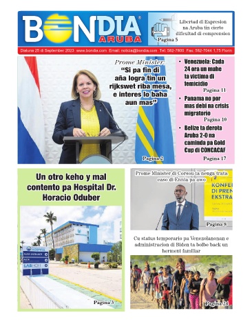 Dialuna 25 di September 2023 www.bondia.com Email: noticia@bondia.com Tel: 582-7800 Fax: 582-7044 1,75 Florin