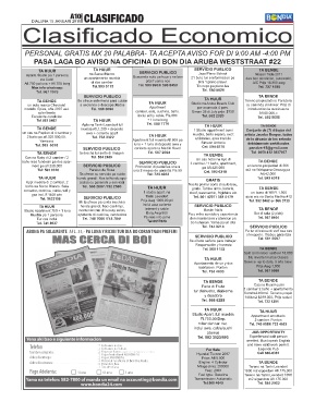 _________________________ Ta ofrece su servicio pa cuida Tel: 733 4033 Cel. 593 6318 Afl.42.000