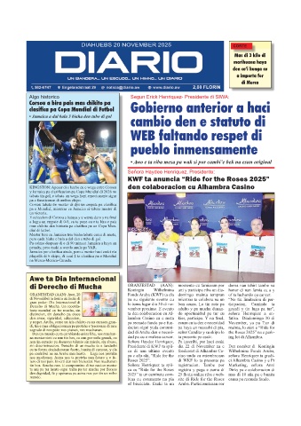 turo di nos pais. Inverti den nan bienestar. Nos muchanan Roses 2025”. di WKF lo ta presente pa ci Alhambra Casino y e Pr