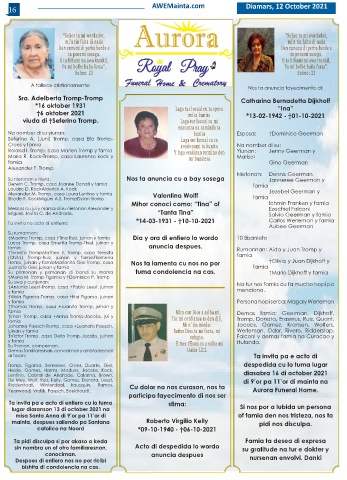 lugar diaranson 13 di october 2021 na Si nos por a lubida un persona