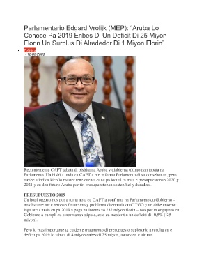 deficit pa 2019 lo tabata di 4 miyon enbes di 25 miyon, awor den e ultimo
