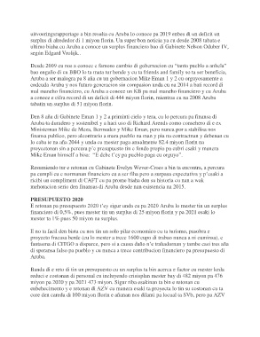 E retonan pa presupuesto 2020 t’ey sigur unda cu pa 2020 Aruba lo mester tin un surplus