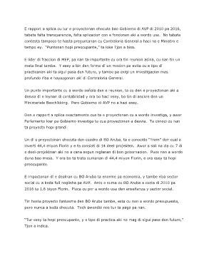Tin hasta proyecto fantasma den BO Aruba tambe, esta cu nan a wordo presupuesta,