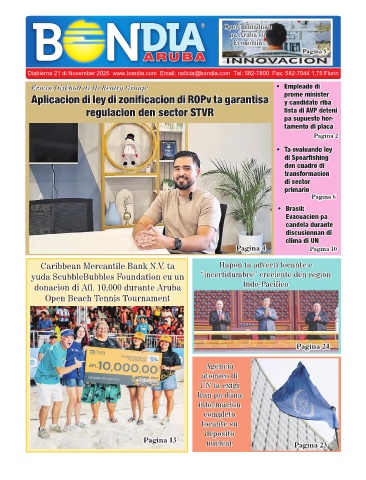 Diabierna 21 di November 2025 www.bondia.com Email: noticia@bondia.com Tel: 582-7800 Fax: 582-7044 1,75 Florin