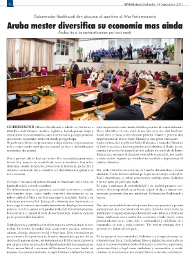 Gobernador Boekhoudt den discurso di apertura di Aña Parlamentario
