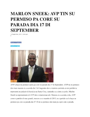 AVP a haya un permiso ayera pa core su parada dia 17 di September. AVP tin su permiso