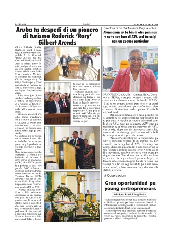 di turismo Roderick ‘Rory’ y no ta cay bao di AZV, scol ta exigi