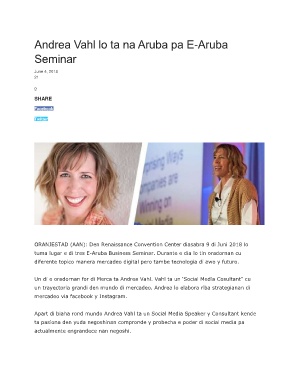 Un di e oradornan for di Merca ta Andrea Vahl. Vahl ta un ‘Social Media Cosultant” cu