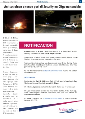 Starting Monday, April 6, 2020 Aruba Bank N.V. will open its branches in San