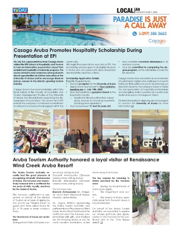 On July 3rd, representatives from Casago Aruba community. • Must maintain consistent attendance in all