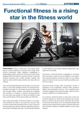 FUNCTIONAL fitness, a rising star in the fitness world, to older adults, too, as it helps maintain independence and