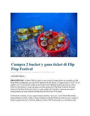ticket di Flip Flop Festival ta facil, cu cada compra di 2 bucket, e persona por gana 1