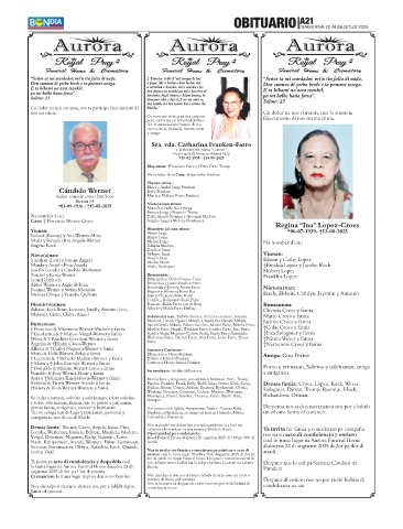 Ta invita pa acto di condolencia y despedida cual nos defunto stimá Catharina lo sali pa Santana Centraal na Sabana Despues nos lo sali pa Santana Catolico na