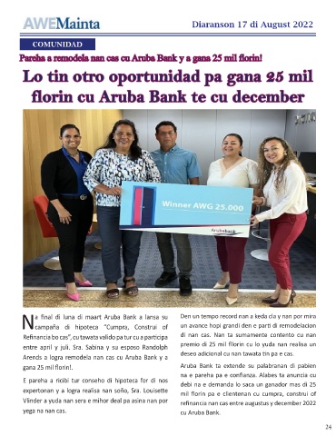 gana 25 mil florin!. Aruba Bank ta extende su palabranan di pabien