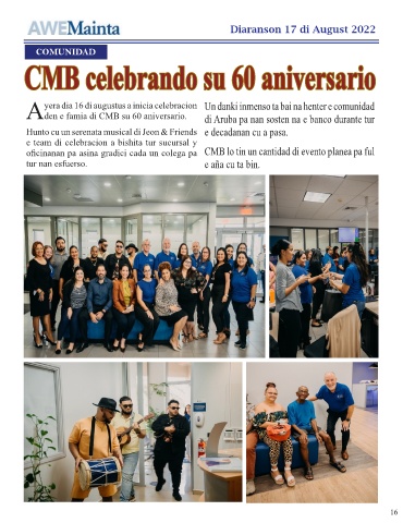 oficinanan pa asina gradici cada un colega pa CMB lo tin un cantidad di evento planea pa ful