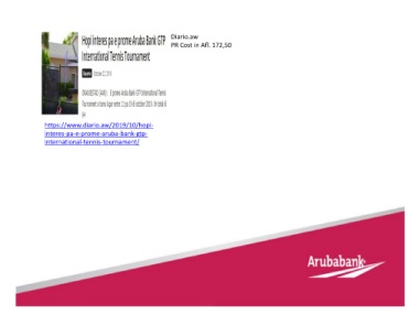 Diario.aw PR Cost in Afl. 172,50 https://www.diario.aw/2019/10/hopi- interes-pa-e-prome-aruba-bank-gtp- international-tennis-tournament/