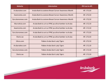 Awemainta.com Aruba Bank ta sostene Breast Cancer Awareness Month Afl. 172,50