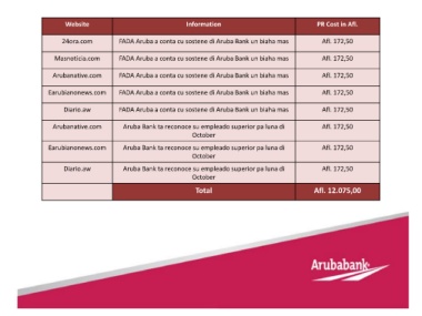 Masnoticia.com FADA Aruba a conta cu sostene di Aruba Bank un biaha mas Afl. 172,50