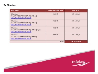 Telearuba: Oct26th Afl. 3.850,00