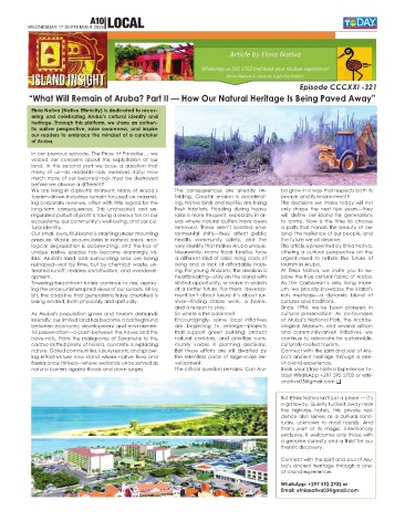 We are living in a pivotal moment. Many of Aruba’s        The  consequences  are  already  un-       ba grow in a way that respects both its